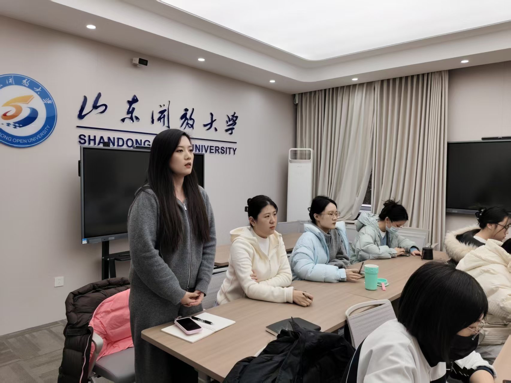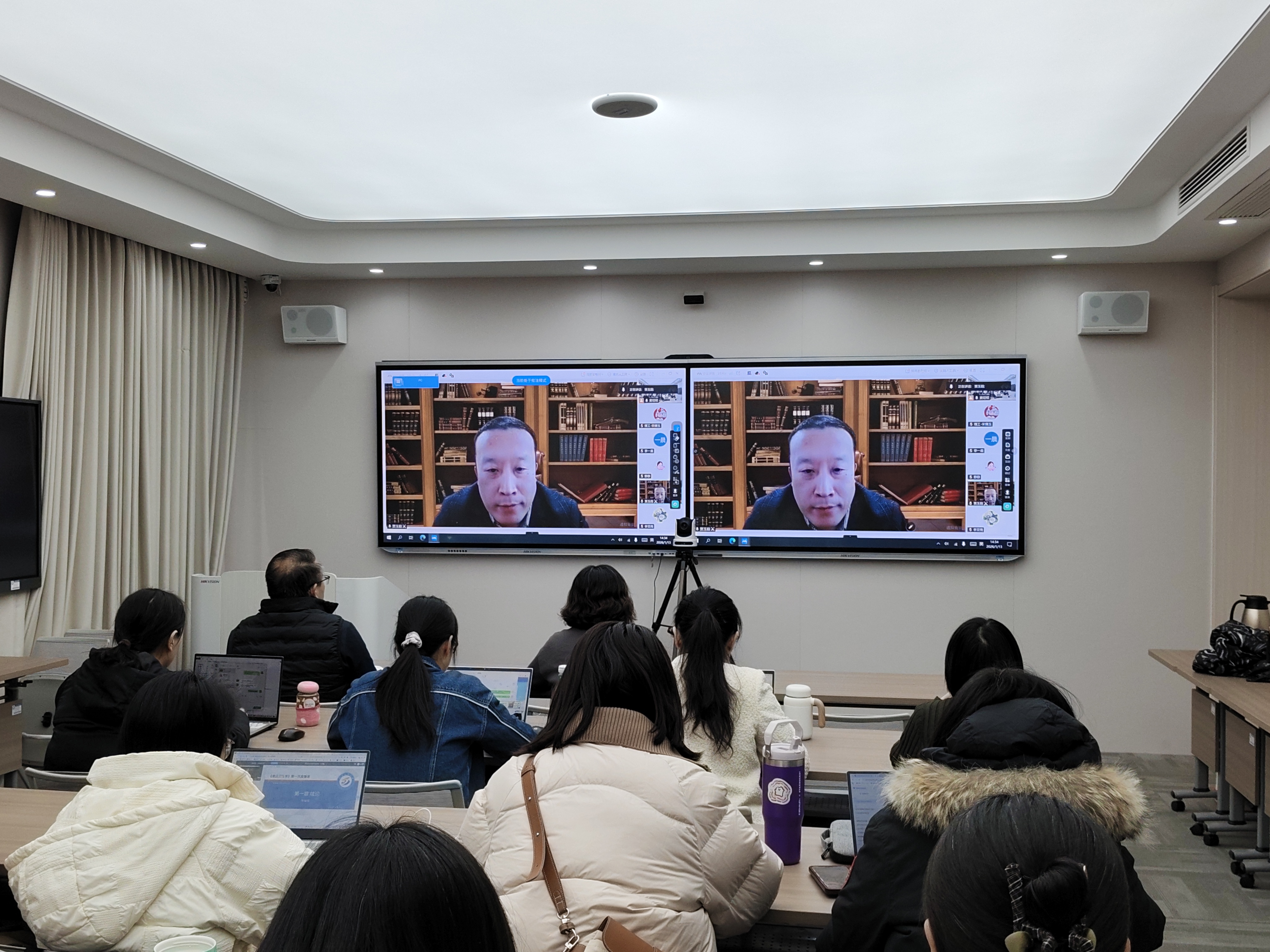 为准确把握AI时代远程教育的发展趋势和研究热点,提升教师科研水平,1月13日下午,文法教学部在舜耕校区213智慧教室举办了“AI时代远程教育发展趋势与研究热点”专题讲座。本次讲座采用线上线下相结合的形式,文法教学部全体专职教师、部分兼职老师和市县学习中心教师参加。